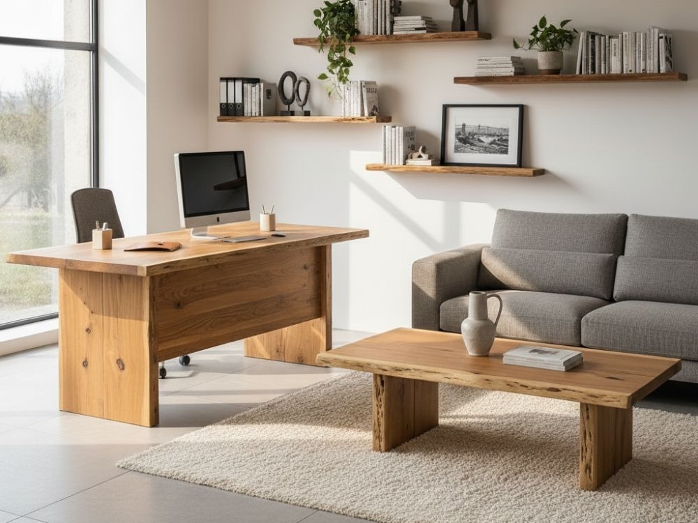 يتطلّب إنتاج أطقم المكاتب الخشبية صنعة دقيقة. فالاختيار الصحيح للخشب المستخدم وتقنيات التجفيف الخاصة تمنع الأثاث من الالتواء أو التشقق بمرور الوقت. بعد قطع الخشب، يتم صنفرة الخشب وصقله بالزيوت أو الورنيش الواقي. تحمي هذه العملية سطح الأثاث من البقع والخدوش. وفيما يتعلق بالوظائف، غالبًا ما تشتمل أطقم المكاتب الخشبية الحديثة على حجرات خاصة لإدارة الكابلات وتصميمات مريحة.